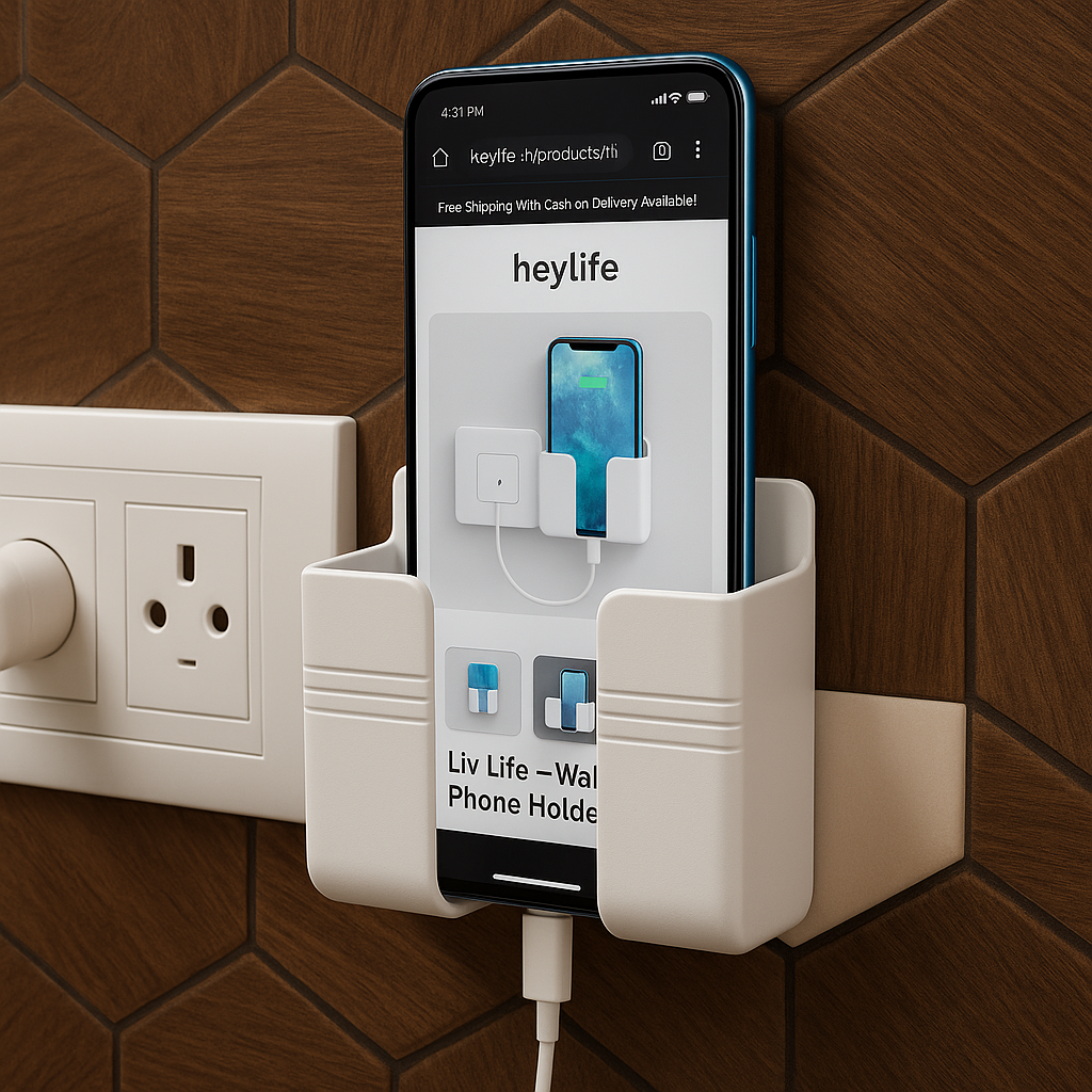 Keep your phone safe, visible, and hands-free with the Hey Life™ Hands-Free Wall Phone Holder. Whether you’re in the kitchen, bedroom, office, or bathroom, this clever wall mount gives your phone a secure spot—no more balancing it on tables, beds, or countertops.